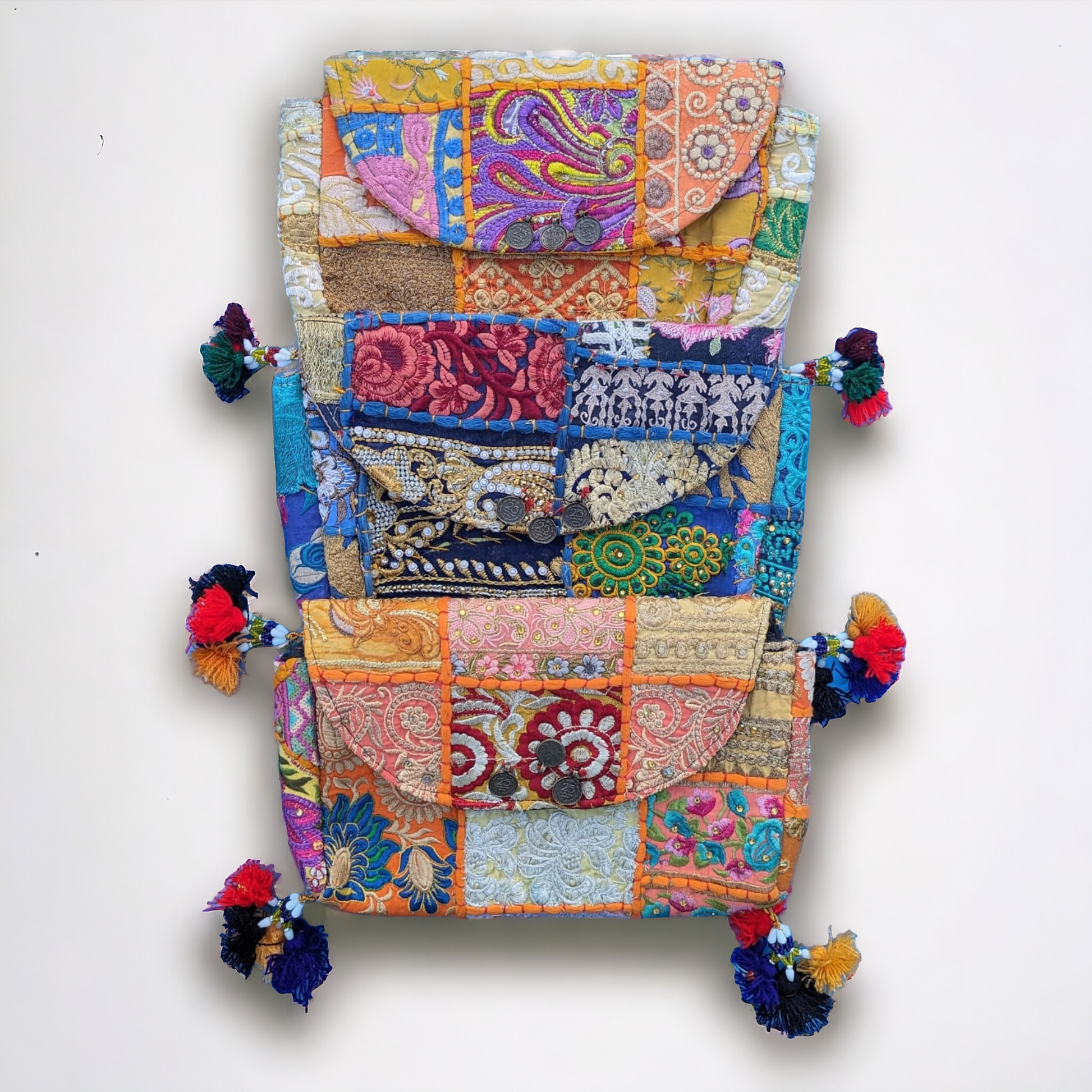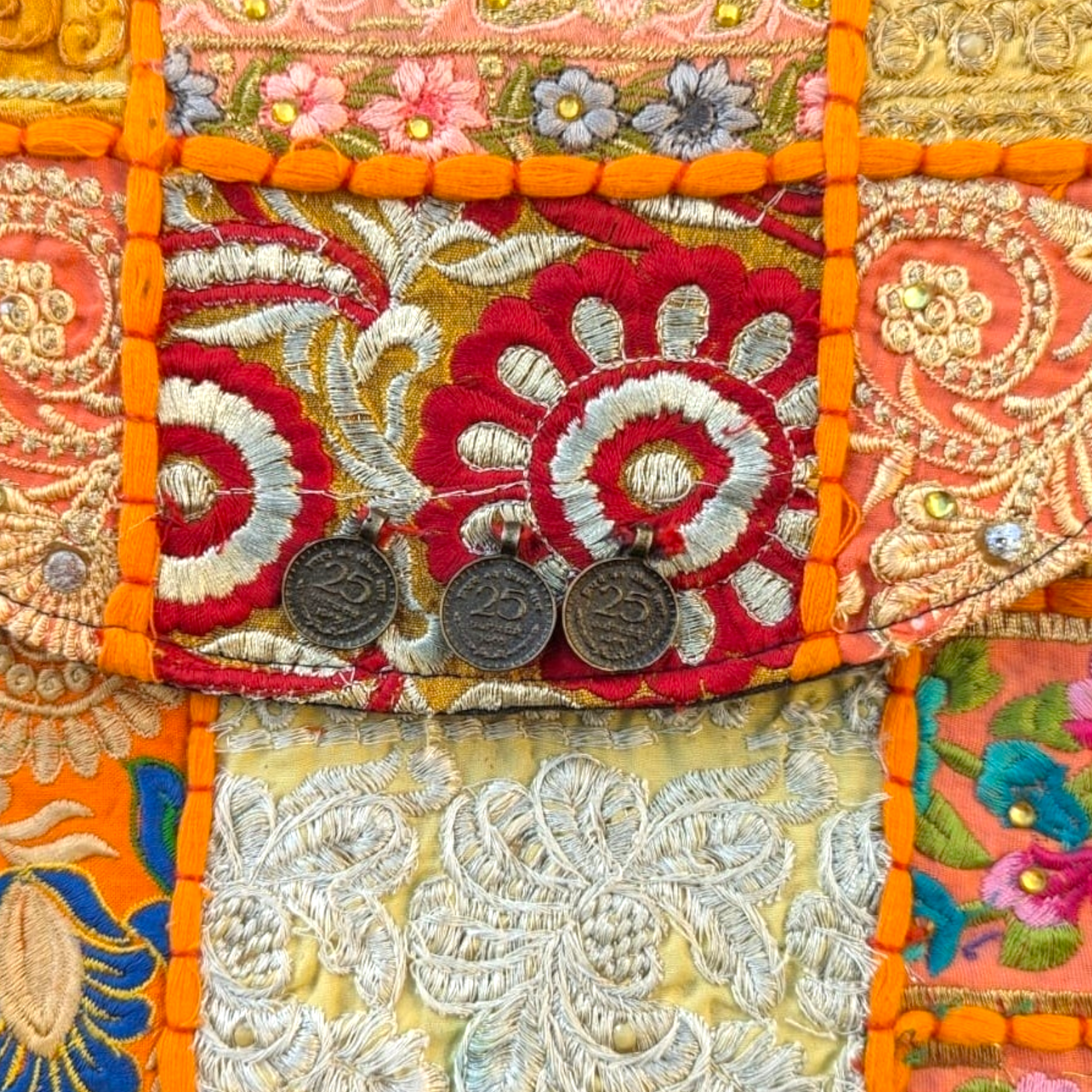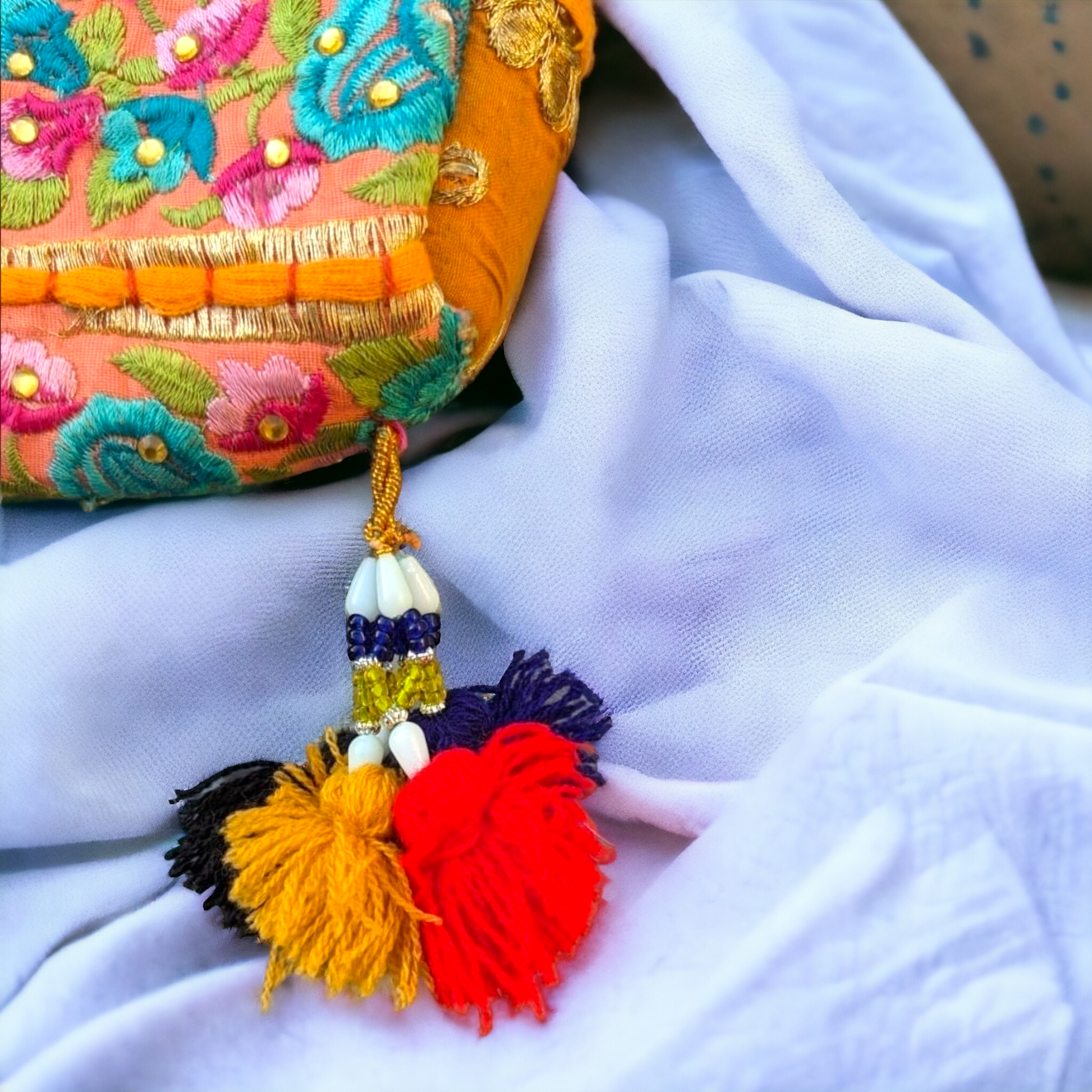 Discover the artistry in our handmade Banjara Clutch bag,the Banjara Clutch bag adds a touch of bohemian elegance to any daily or evening outfit.A perfect companion for daily routines or elegant evenings! The intricate patchwork and unique design add a touch of individuality, while the dangling embellishments elevate its charm. Make a statement with this handcrafted