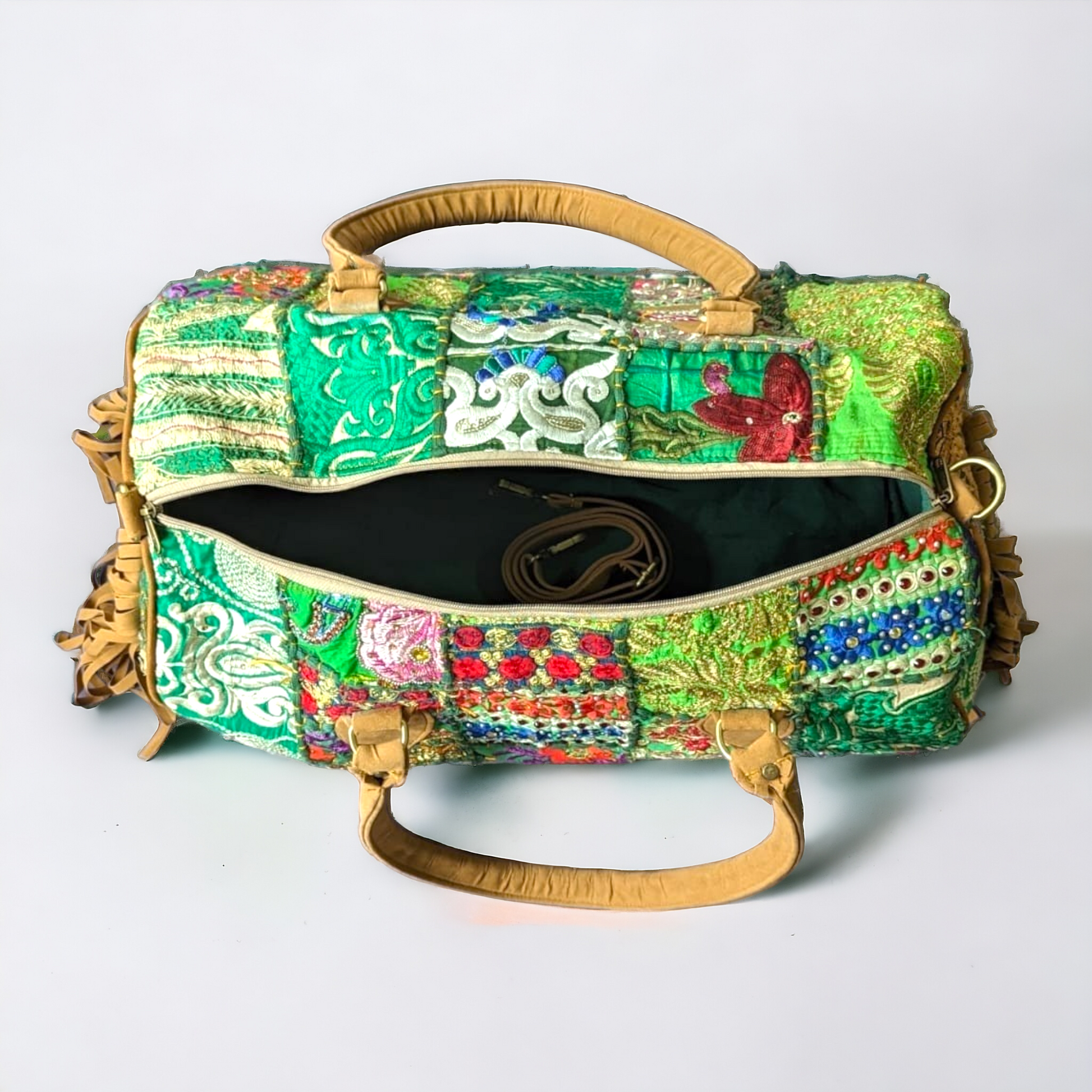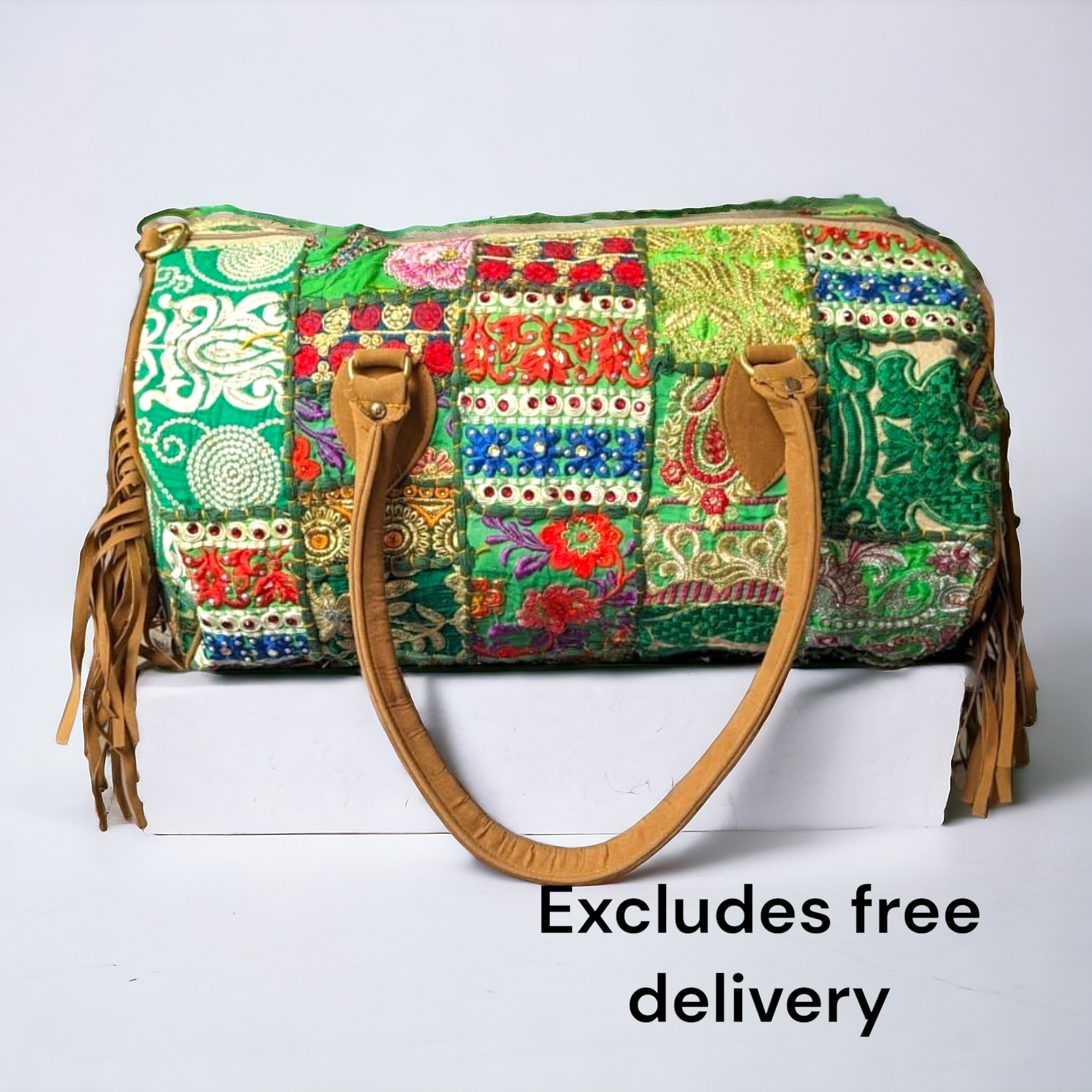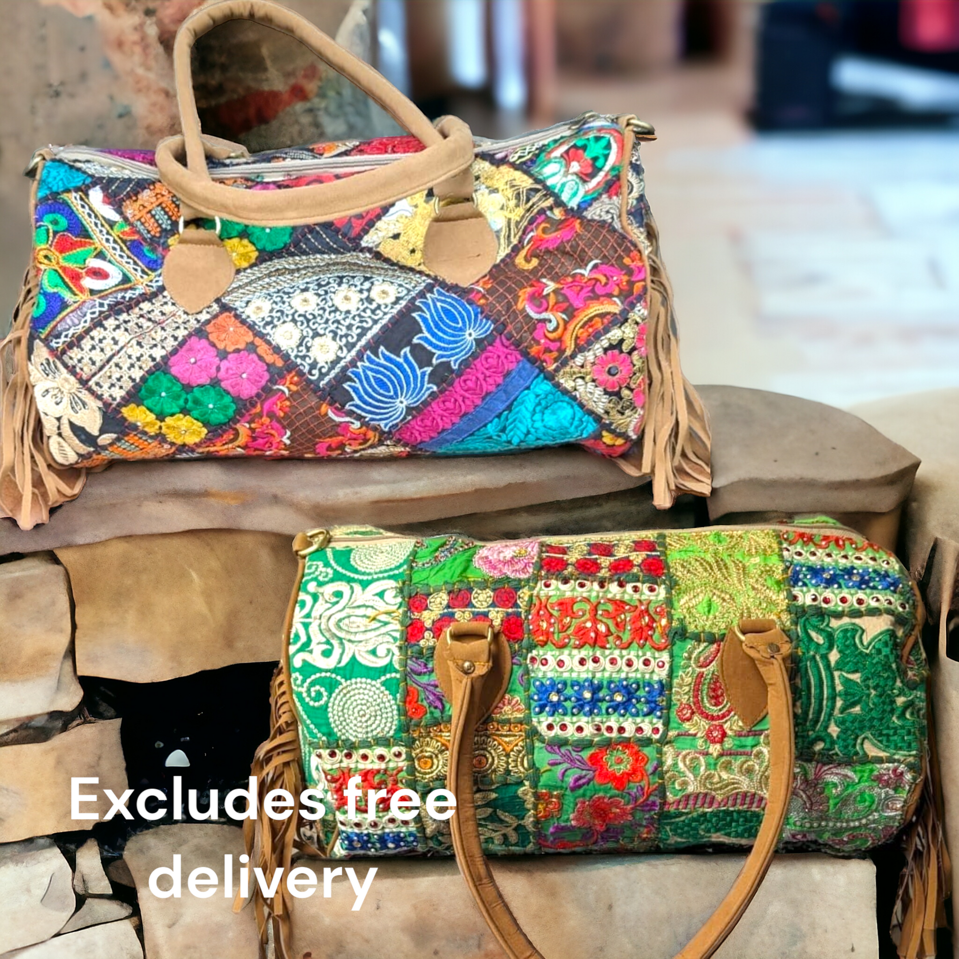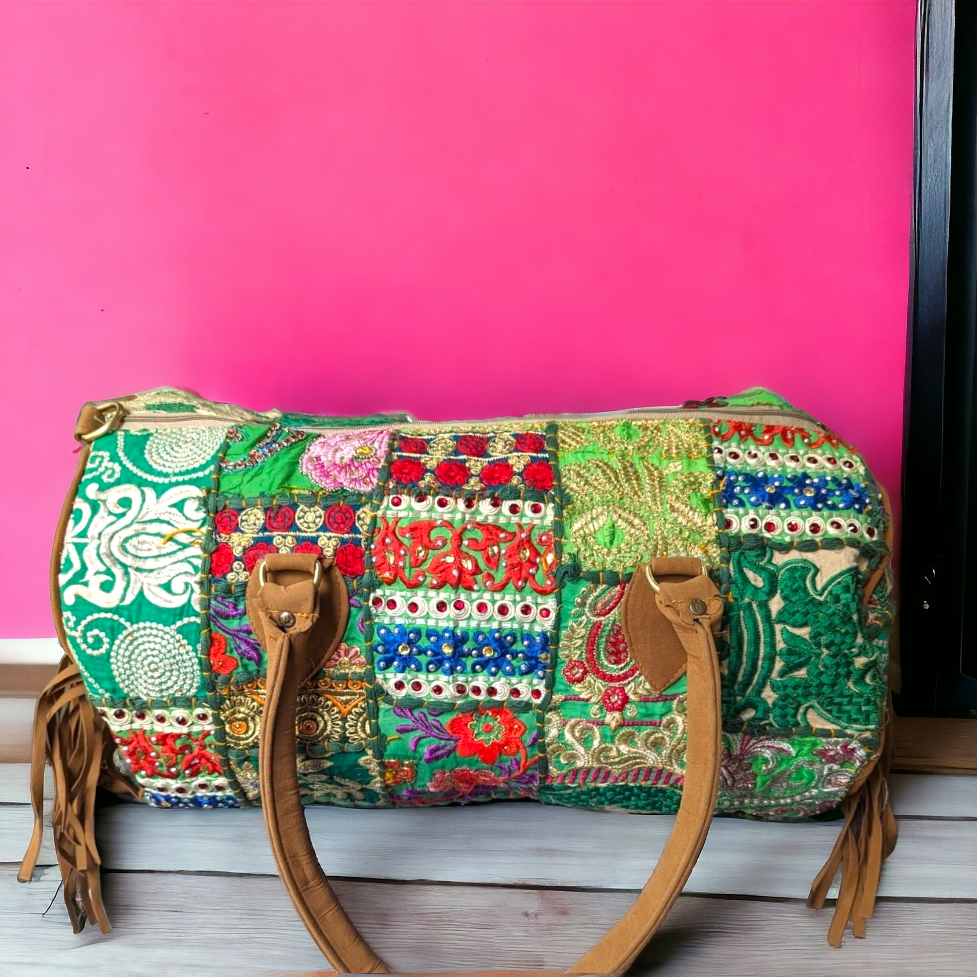 Experience the perfect blend of style and functionality with our Boho Duffle Bag. This beautiful bag features intricate embroidery patchwork, giving it a unique and eye-catching look. Whether you're heading on a trip or hitting the gym, the ample space and zip pocket inside make it the ideal companion. Crafted with sturdy material and a sturdy design, it can carry all your essentials effortlessly. Plus, it's compact enough to use as a carry-on luggage for your next flight!*