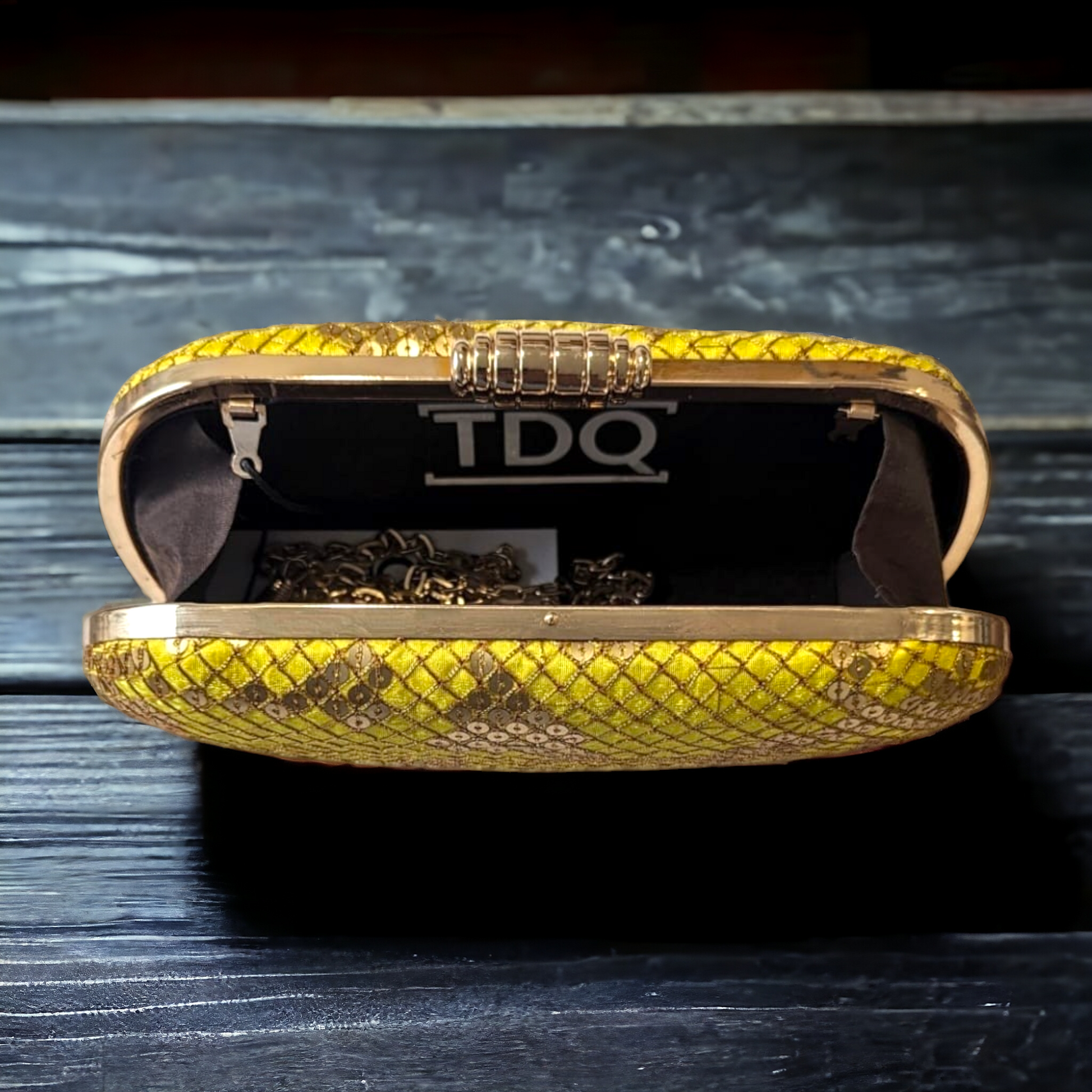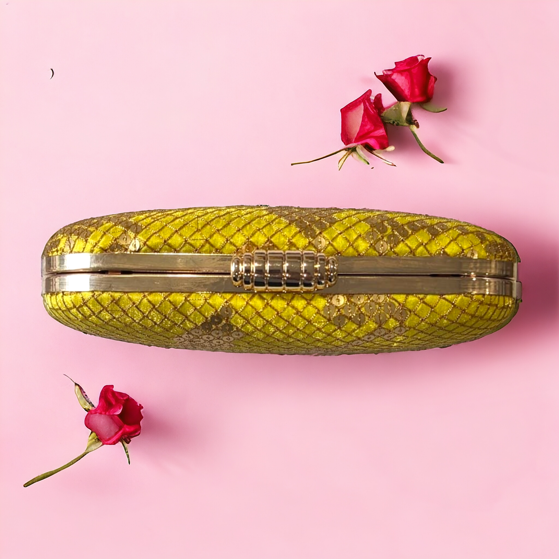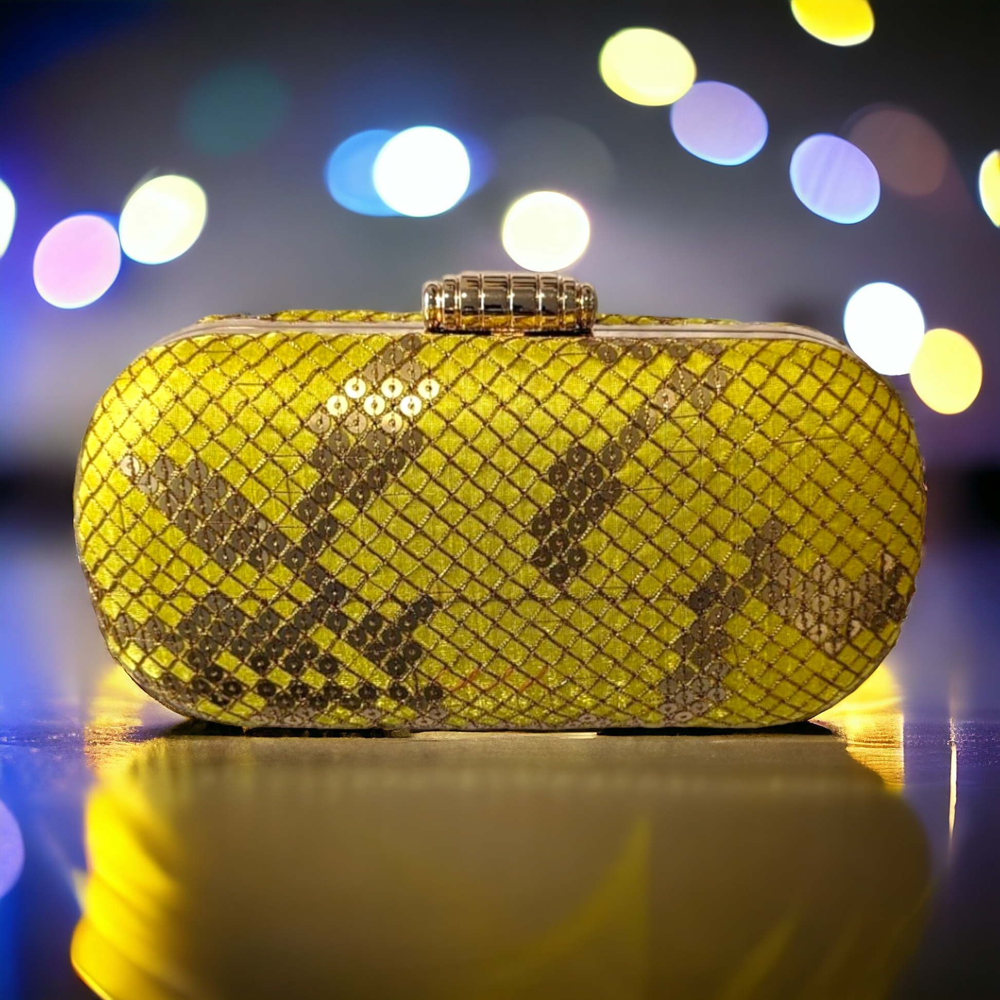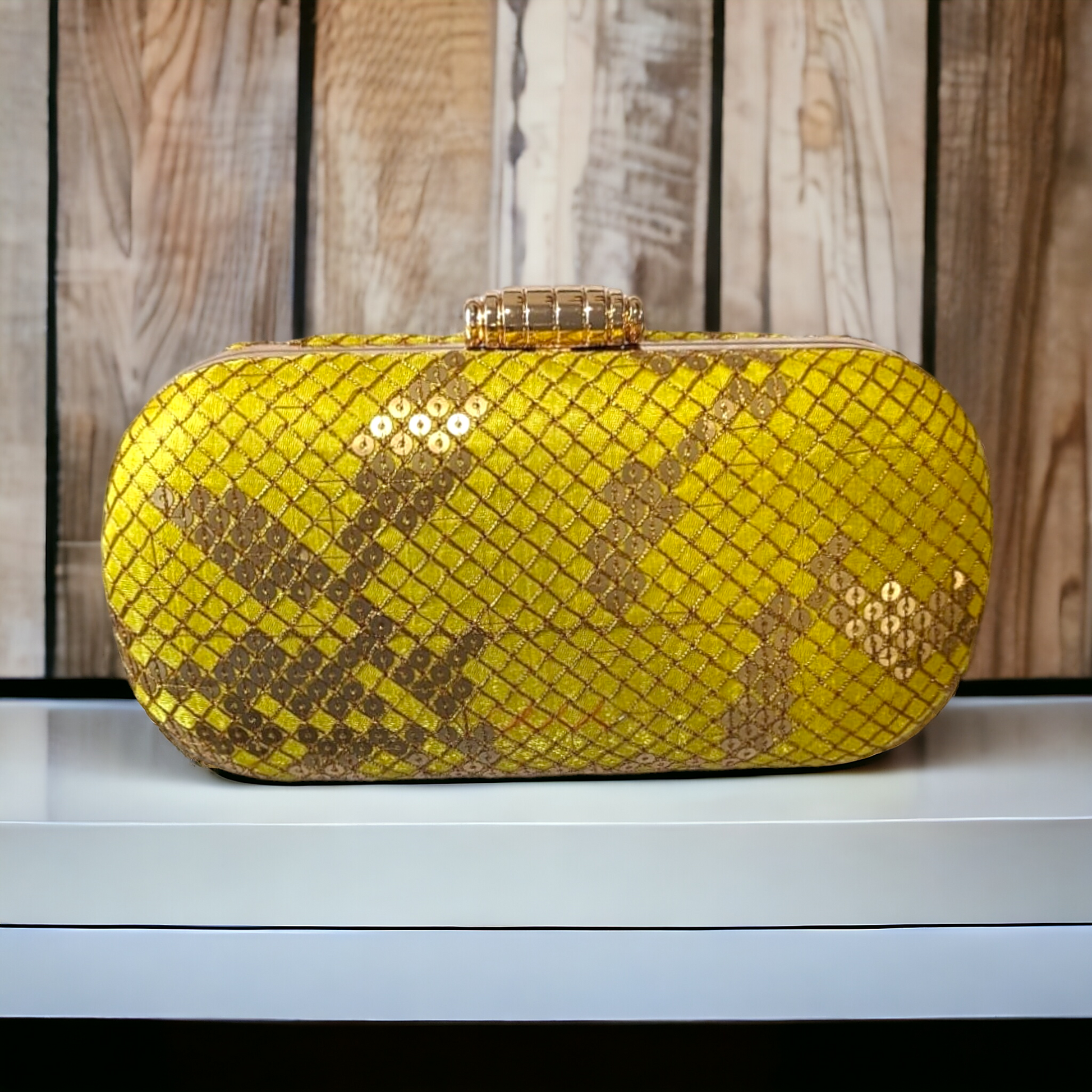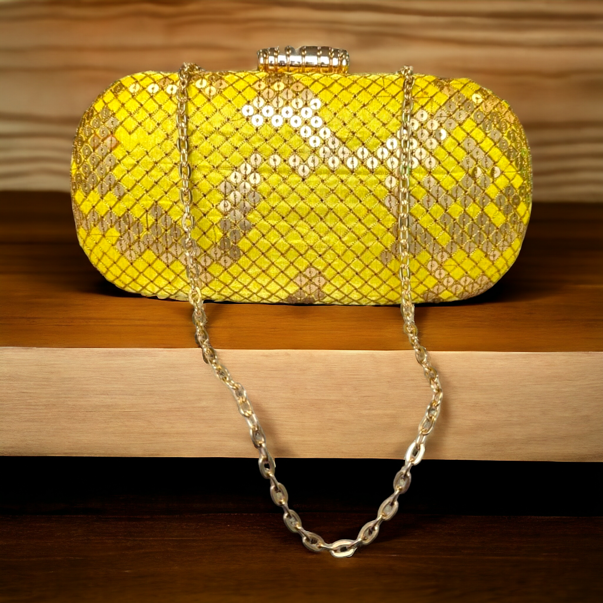 This Clutch features fine thread and sequence work along with vibrant fluorescent yellow color and unique capsule shape, making it perfect for a night out at the club or a fancy dinner. Its spacious design allows for all your essentials, and the convertible sling with detachable chain adds a touch of versatility. Made with durable materials and detailed sequence and thread work, it's a fashionable and practical addition to any outfit.