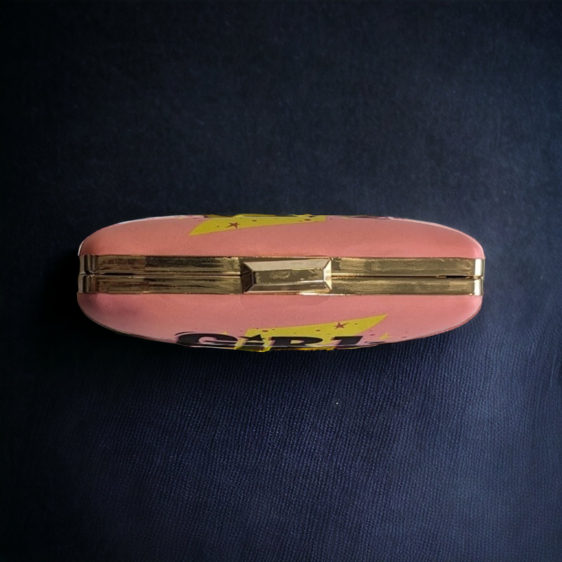 Girl Power Clutch - Crafted with a durable frame this elegant rectangular frame clutch easily converts into a messenger sling for added convenience. With a convertible sling, it's perfect for any active lifestyle. Whether you're carrying your everyday essentials or travelling light, this stylish clutch will help you stay sleek and organized.