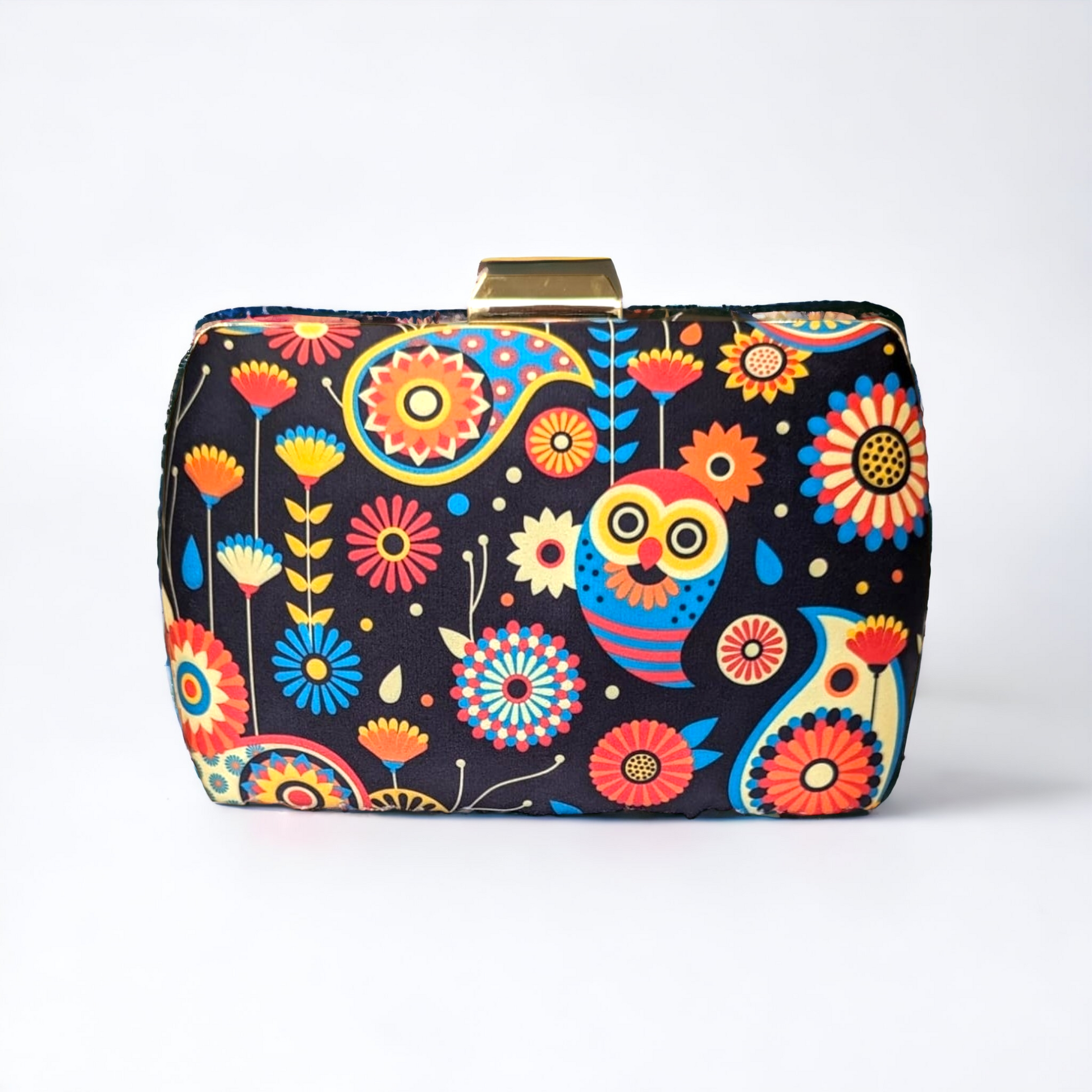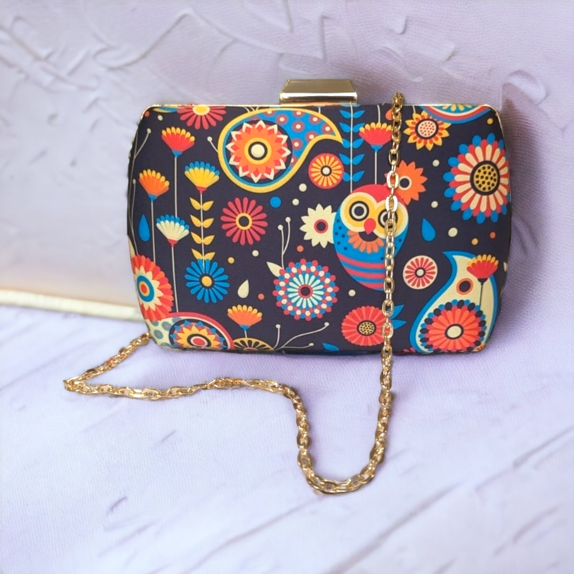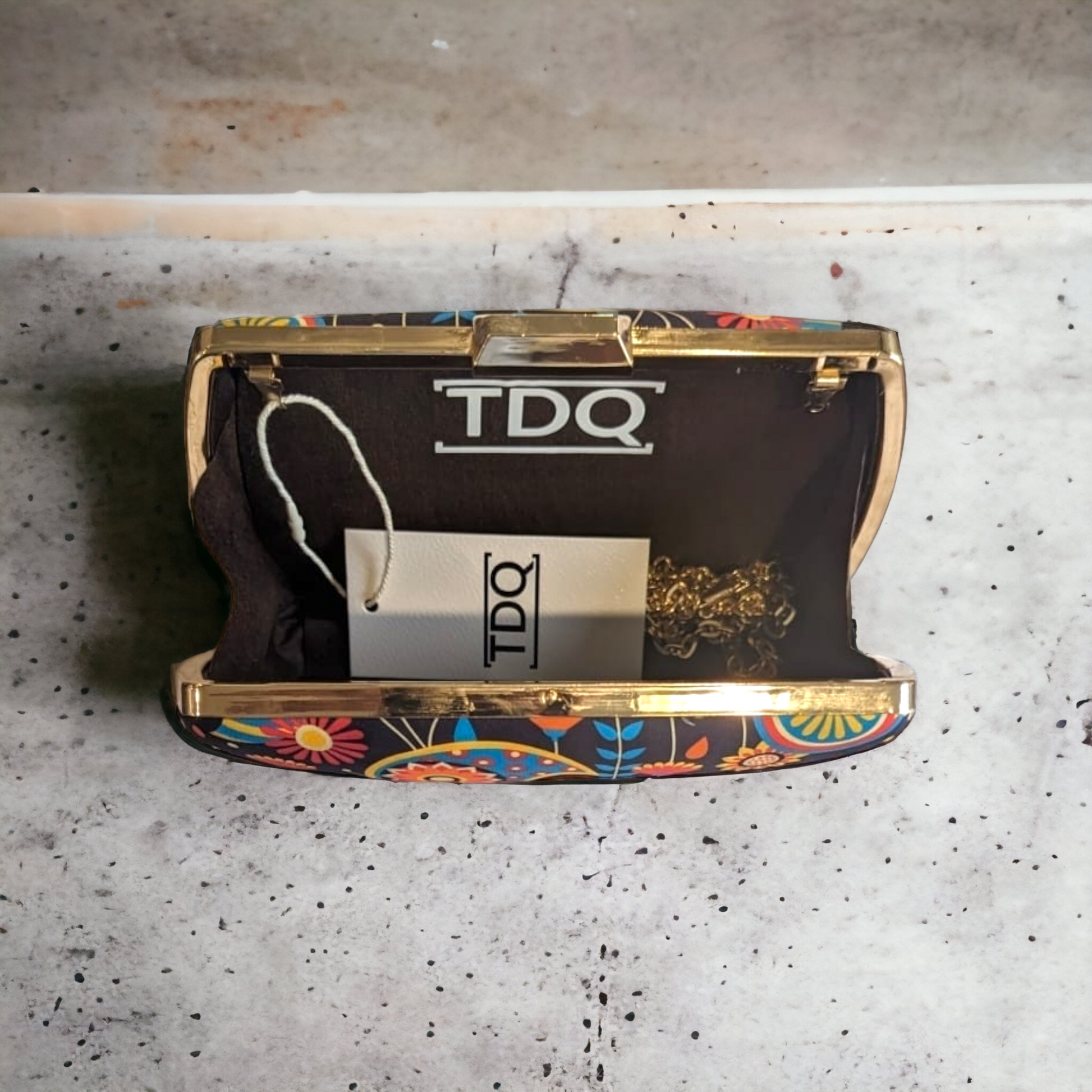 Midnight Dream Clutch - Crafted with a durable frame this elegant rectangular frame clutch easily converts into a messenger sling for added convenience. With a convertible sling, it's perfect for any active lifestyle. Whether you're carrying your everyday essentials or travelling light, this stylish clutch will help you stay sleek and organized.