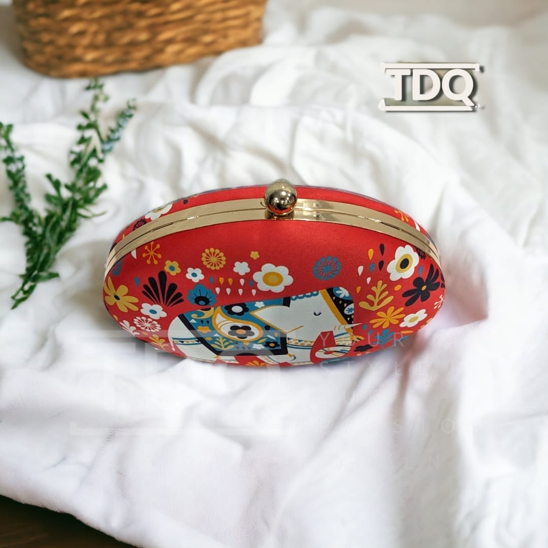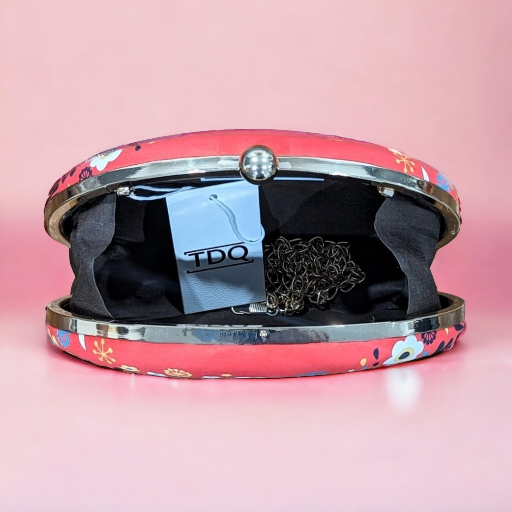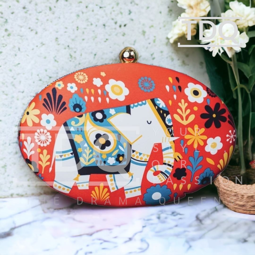 Oval clutch - Crafted with a durable frame this elegant oval frame clutch easily converts into a messenger sling for added convenience. With a convertible sling, it's perfect for any active lifestyle. Whether you're carrying your everyday essentials or travelling light, this stylish clutch will help you stay sleek and organized.