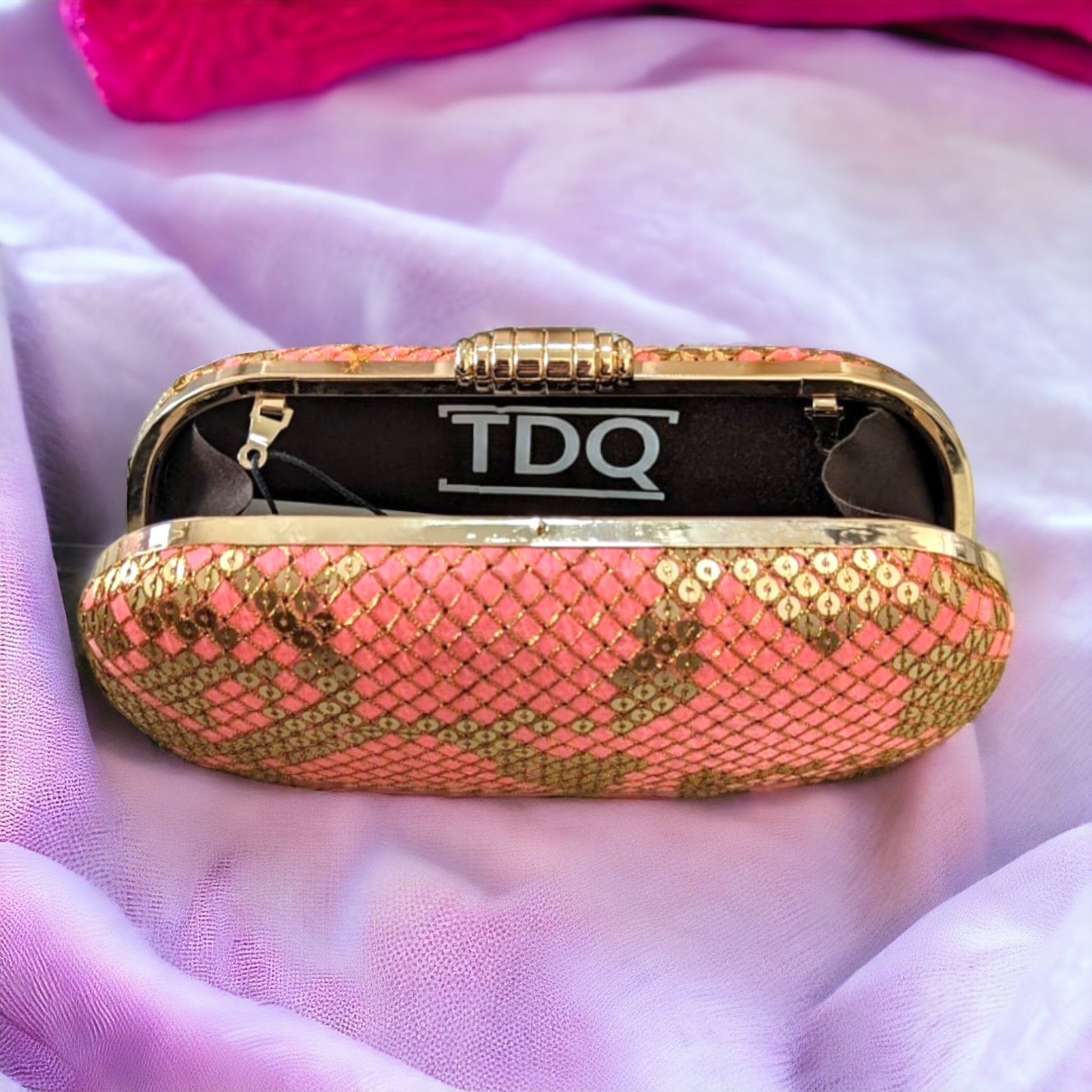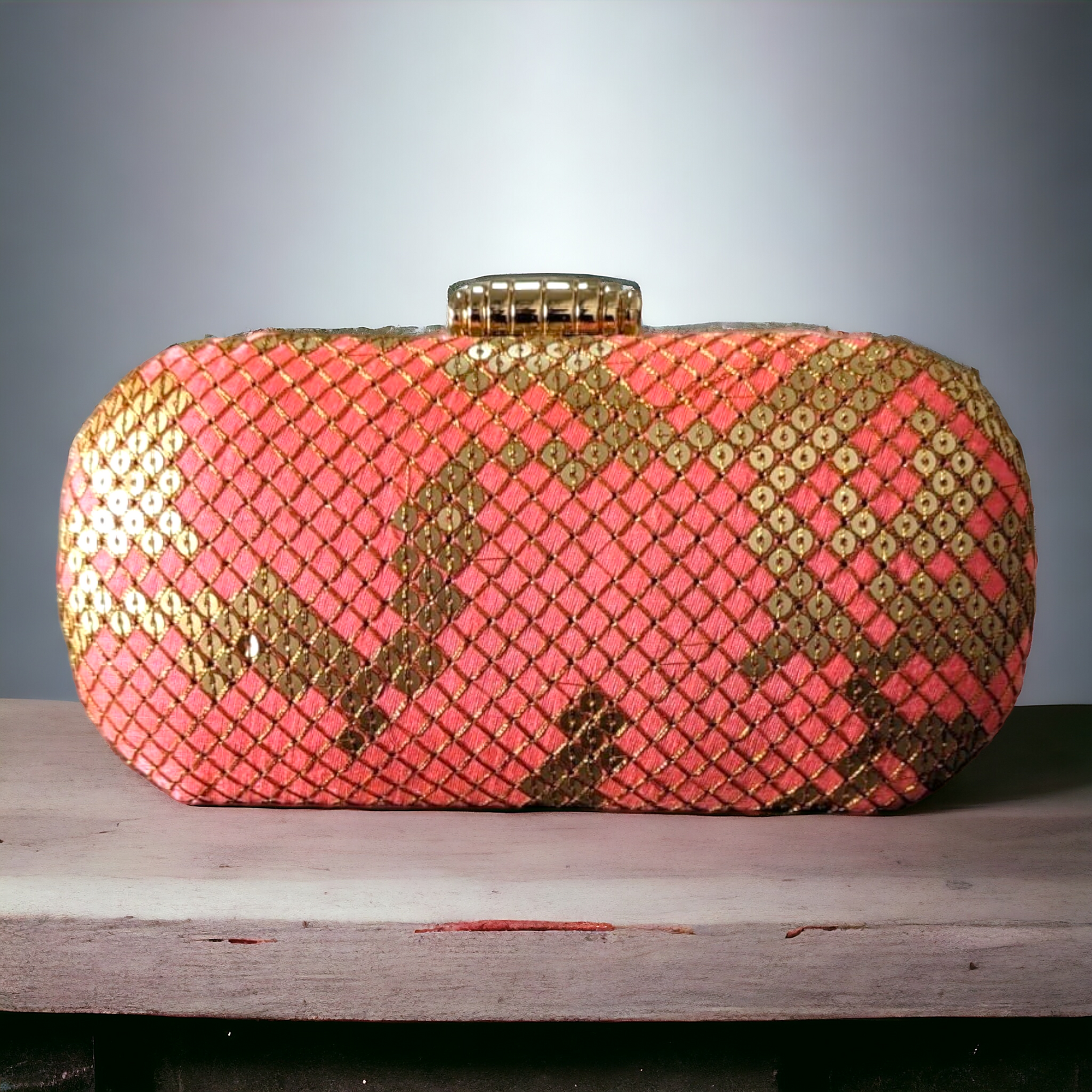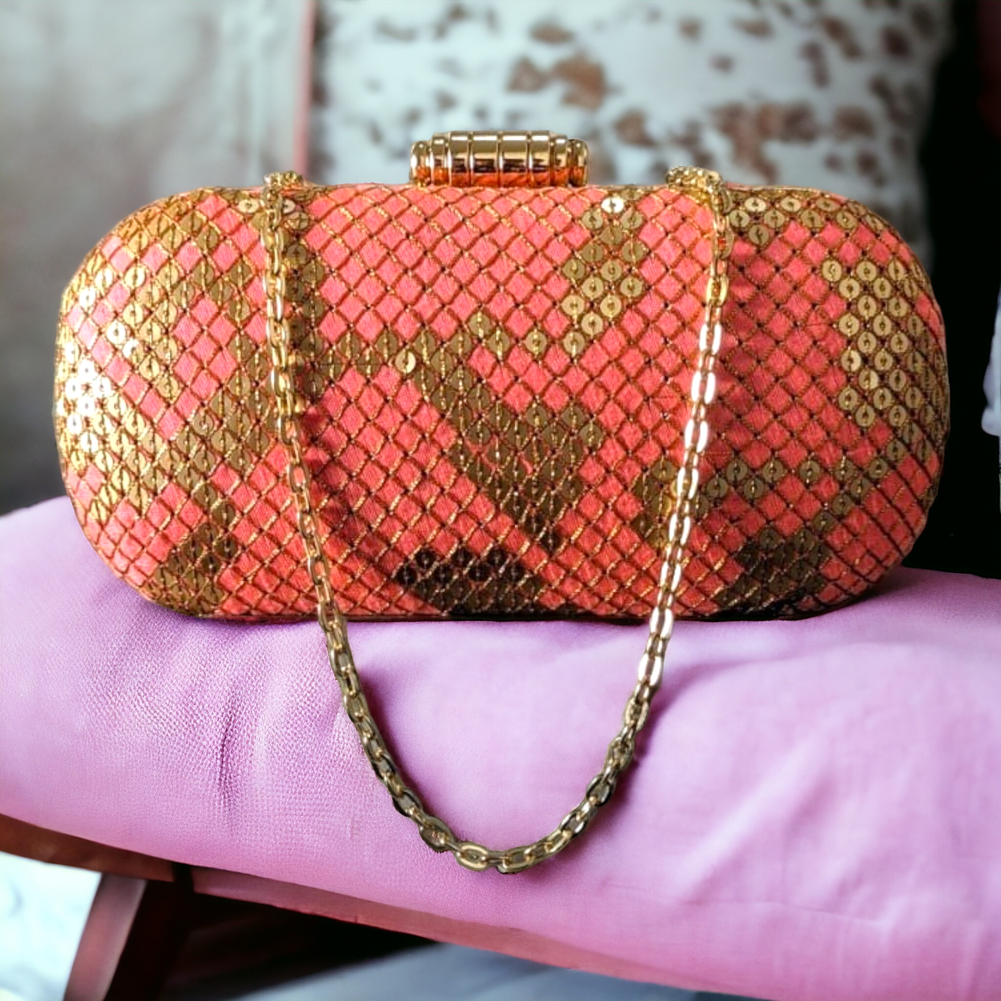 This Clutch features fine thread and sequence work along with vibrant peachy color and unique capsule shape, making it perfect for a night out at the club or a fancy dinner. Its spacious design allows for all your essentials, and the convertible sling with detachable chain adds a touch of versatility. Made with durable materials and detailed sequence and thread work, it's a fashionable and practical addition to any outfit.