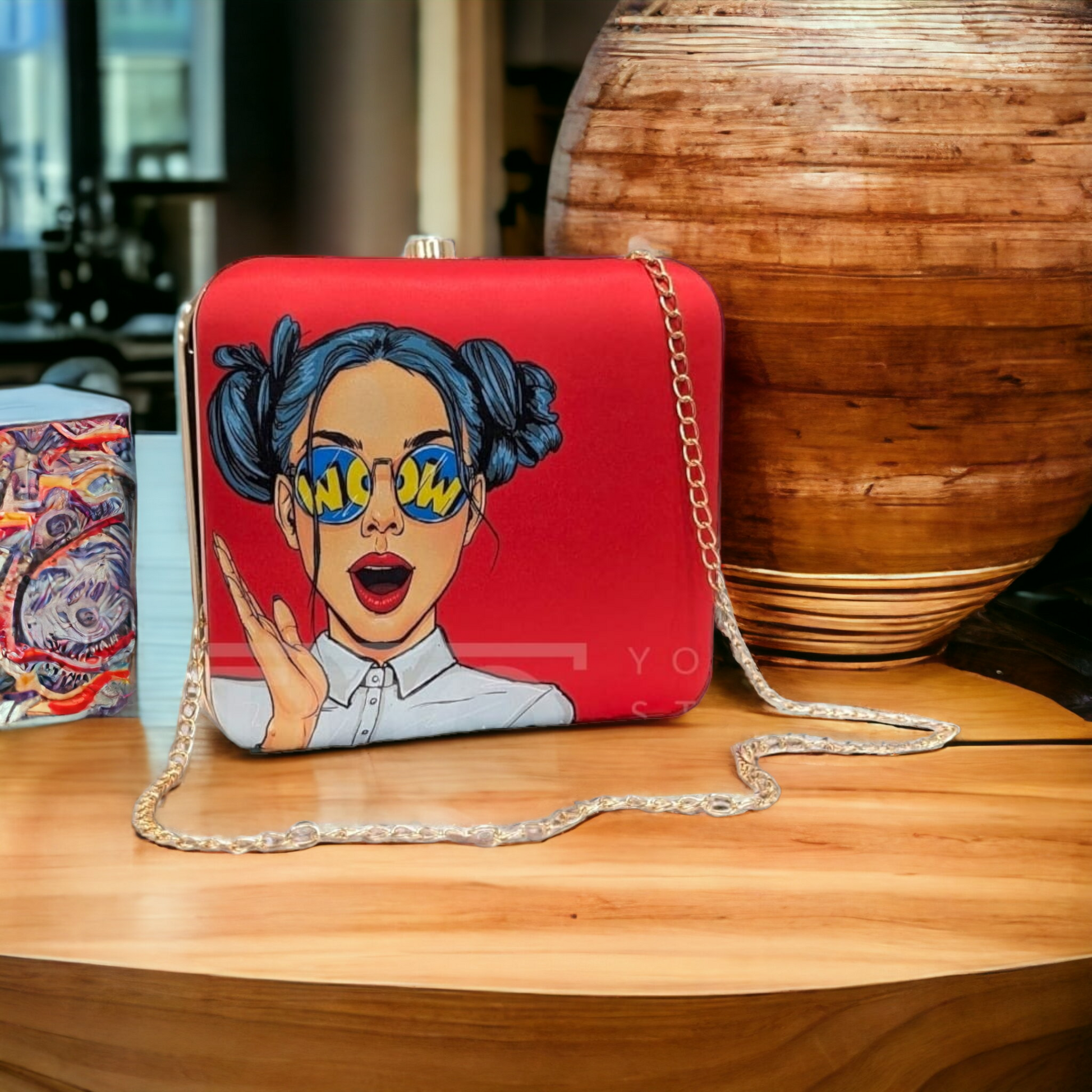 Pop-up clutch - Crafted with a durable frame this elegant square frame clutch easily converts into a messenger sling for added convenience. With a convertible sling, it's perfect for any active lifestyle. Whether you're carrying your everyday essentials or travelling light, this stylish clutch will help you stay sleek and organized.