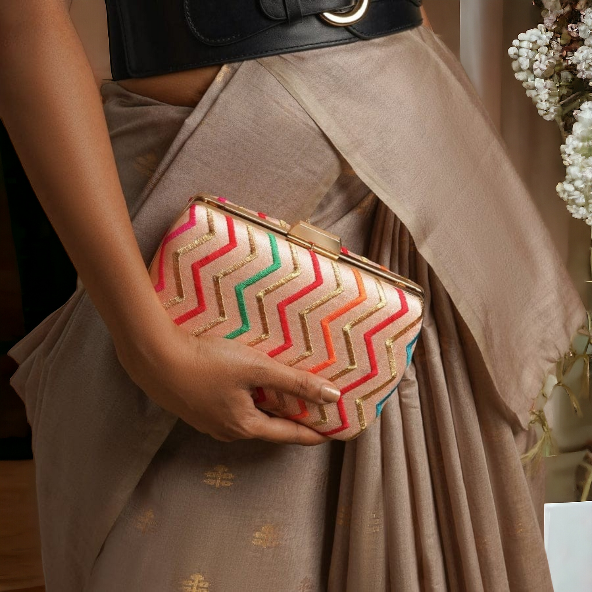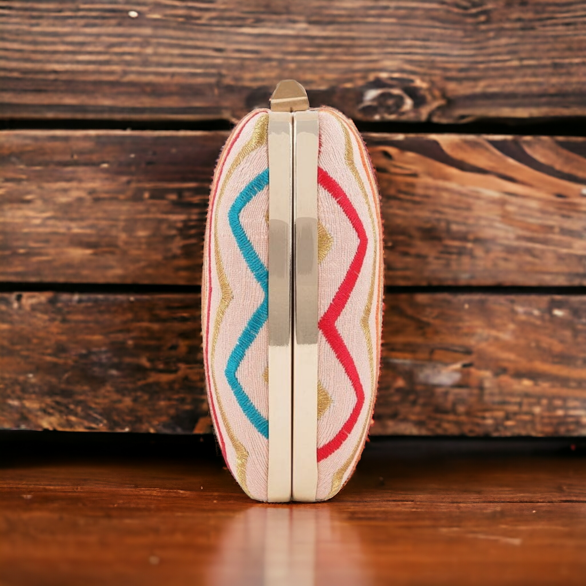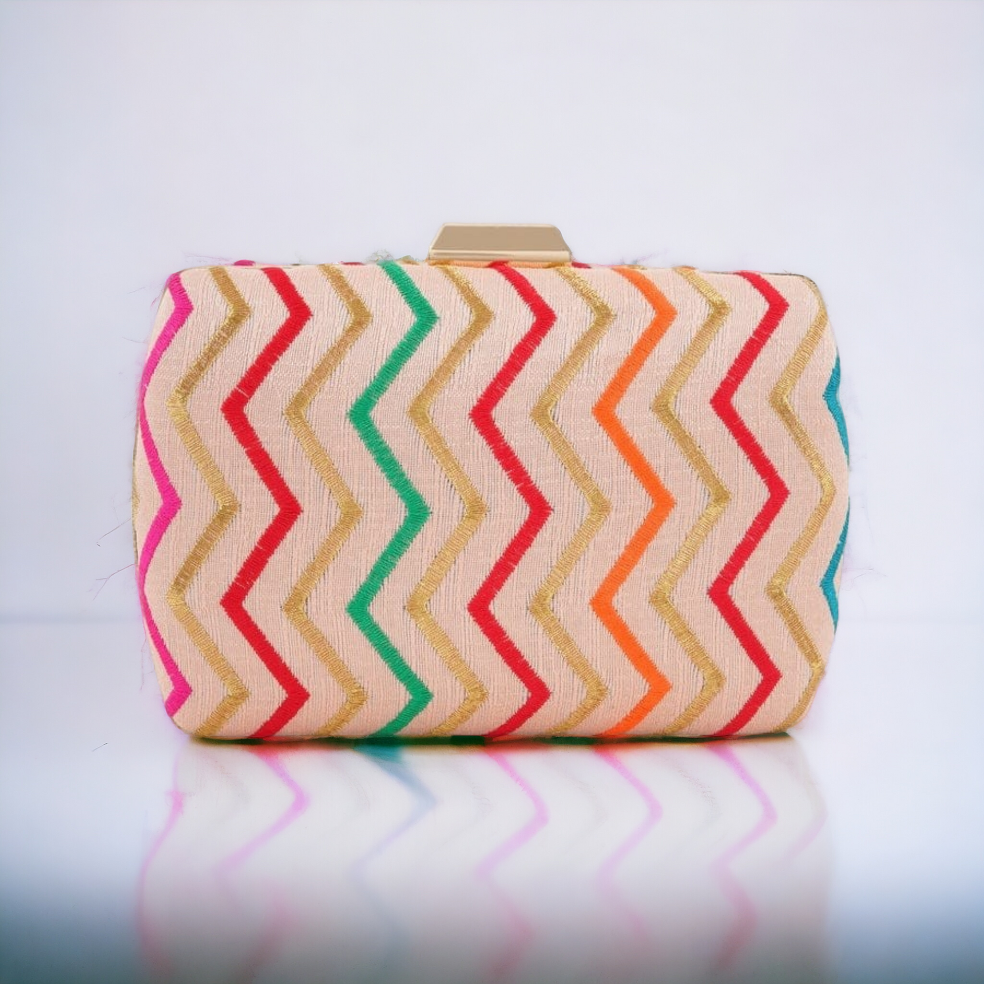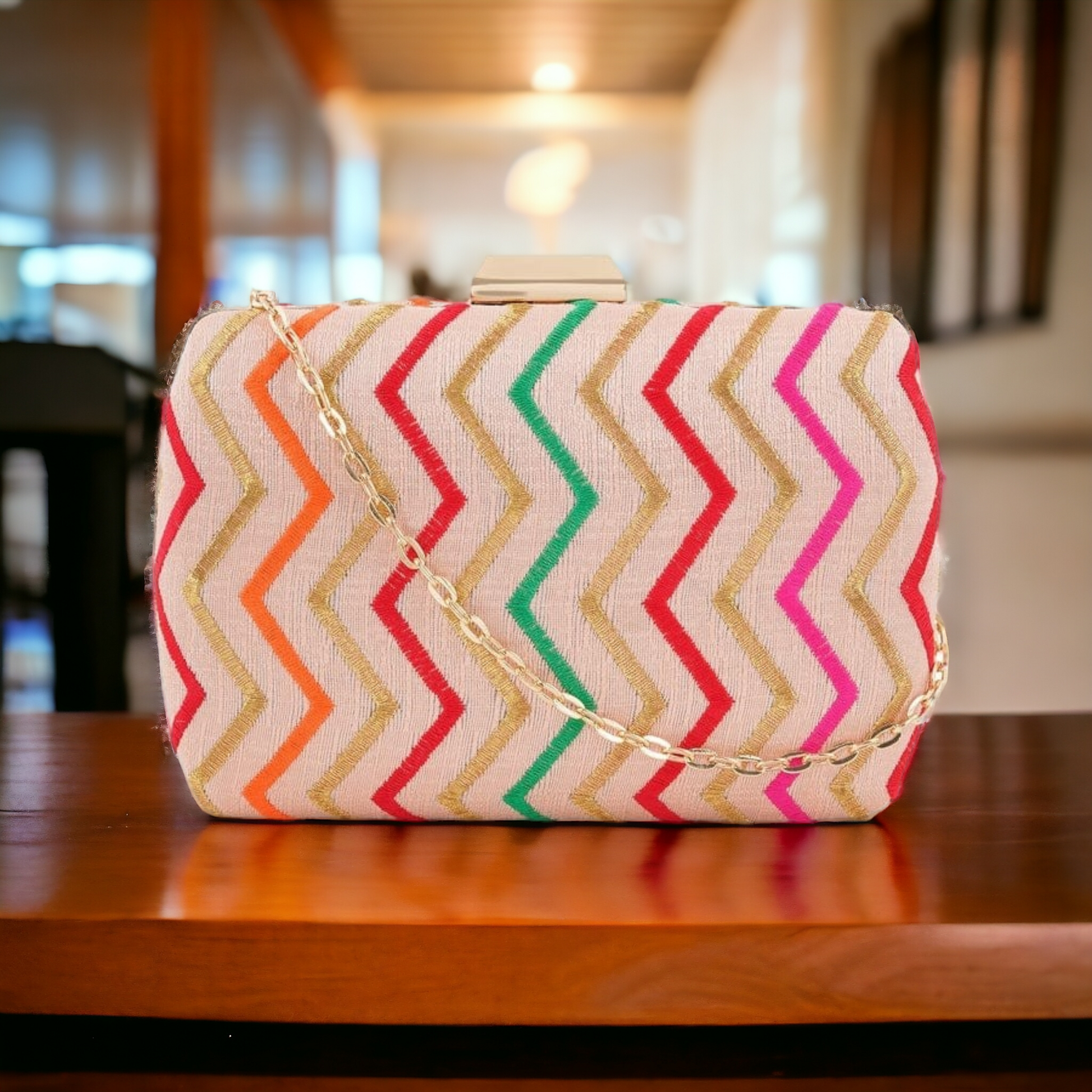 This elegant clutch is perfect for both daily use or for special evenings. Its classic zigzag thread embroidery adds a touch of sophistication and style. Crafted with high-quality materials, this clutch is both durable and fashionable. Elevate your wardrobe with this puffy zigzag clutch. Its eye-catching design, it is sure to make a statement and elevate any look.