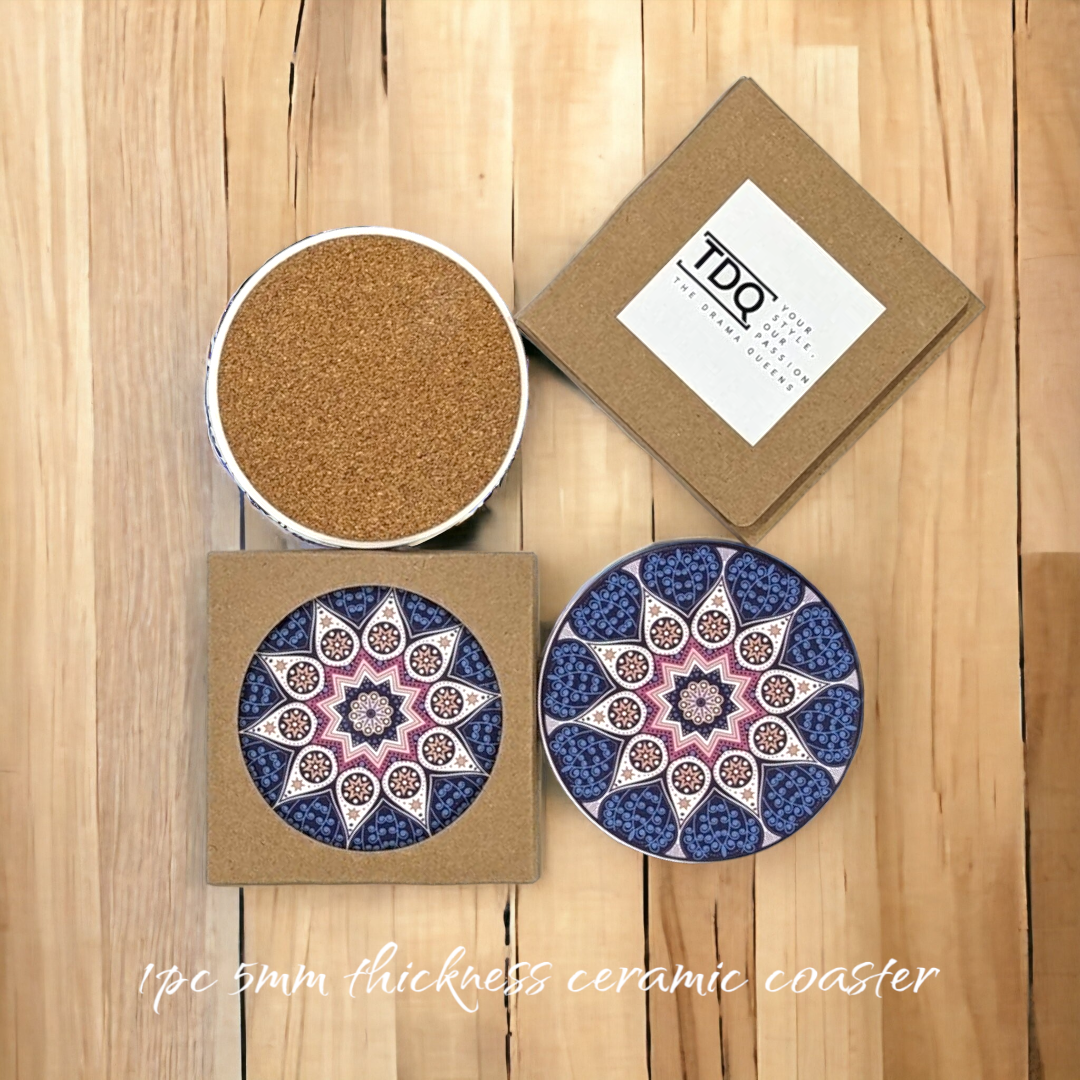 Elevate Your Table Decor with our Stunning Round Mandala Flower Ceramic Coasters!